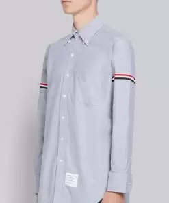 THOME BROWNE Medium Grey Oxford Cotton University Stripe Grosgrain Armband Shirt
